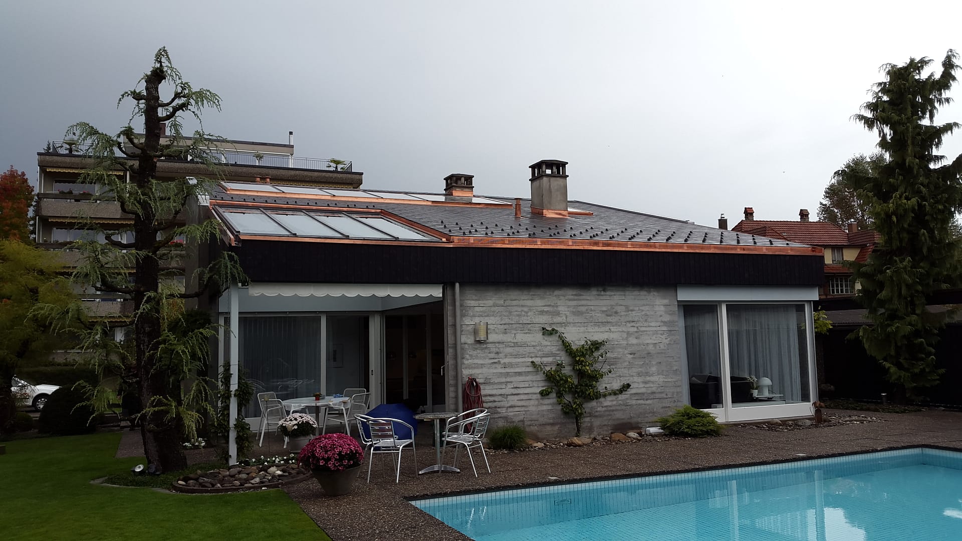 Das Dach dient nicht nur als Schutz des Gebäudes vor Wind und Wetter sondern bietet darüber hinaus viele Gestaltungsmöglichkeiten in Form, Farbe und Eindeckungsmaterialien.